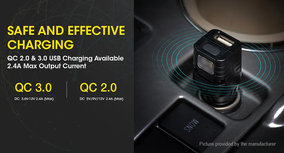 ה-NITECORE VCL10 הוא הגאדג'ט האולטימטיבי הכל-באחד לרכב שתמיד תרצו לשמור בהישג יד. עם טעינת QuickCharge 2.0 ו-3.0 USB זמינה, ה-VCL10 מסוגל לטעון את מכשירי האנדרואיד או ה-iOs שלך במהירות מרבית של 2.4A. עם אמצעי הגנה מרובים לייצוב זרם ומתח הטעינה ולמניעת קצרים, אתה יכול להיות סמוך ובטוח שהציוד שלך נמצא בידיים טובות.